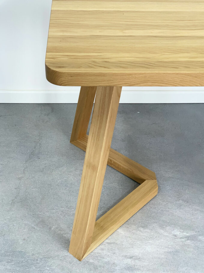 Blat: blat stołu wykonany z litego wyselekcjonowanego i dobieranego kolorystycznie drewna dębowego. Blat wykończony matowym lakierem, olejem lub wybarwiony na wybrany kolor. Istnieje możliwość szczotkowania blatu. Grubość blatu ok. 4 cm.